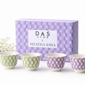 A refined ceramic finjal set (4pcs) designed to elevate modern coffee rituals. Featuring a sculptural form and elegant geometric pattern, each piece blends contemporary design with timeless tradition. Crafted from premium glazed ceramic, it offers a smooth finish and a comfortable hold—perfect for Arabic coffee or tea service. Presented in a minimalist luxury box, ideal for sophisticated hosting or gifting.