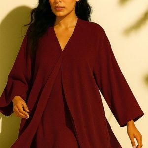 Crafted from premium lightweight fabric, this timeless piece flows with effortless grace and sophistication. The deep Rouge shade exudes refined confidence and feminine allure, creating a statement of modern luxury for every graceful occasion.
